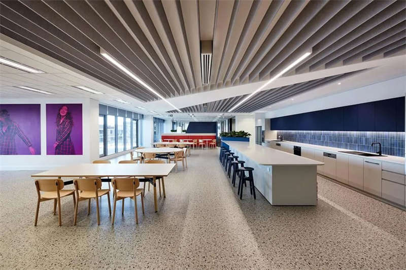 這處新空間包含了應(yīng)對新冠疫情工作場所應(yīng)具備的所有關(guān)鍵組成部分。到達(dá)這里后,一道可移動的超大墻體貫穿整個空間,打開后,這里可以舉辦大型活動或全體人員會議;關(guān)閉后,可以通過多種方式對空間進(jìn)行重新配置,使這里能夠滿足董事會議、培訓(xùn)和各種研討會的需要。