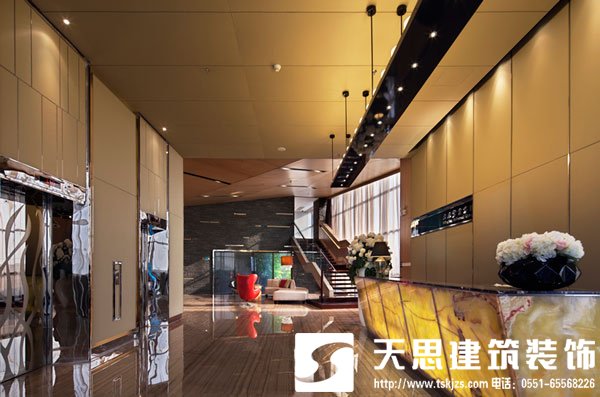 沒有個氣質顏值雙高的前臺都不好意思自稱大企業!來看看這個出自合肥天思裝飾的會所式辦公樓,其古韻端莊又不失時尚簡約的寫字樓設計風格令人耳目一新。一如會所式辦公融合了商務與休閑的獨特氣質,該辦公樓的前臺也散發出會所式辦公的灑脫與從容,精心的布置和氣氛的營造令人眼前一亮。