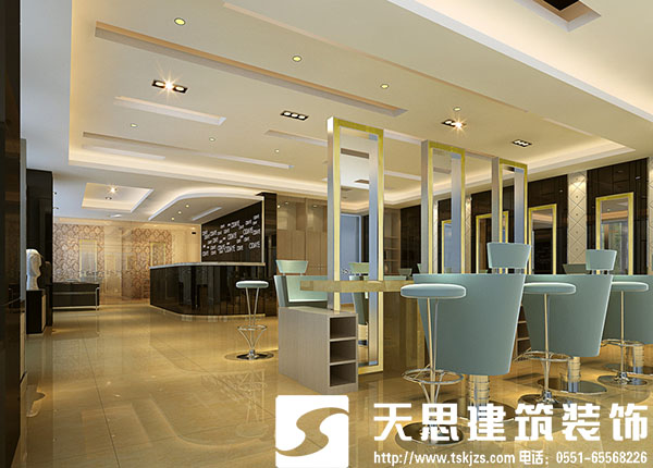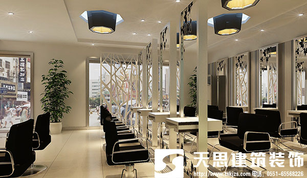 5.對等候區、染燙區、上網區、洗頭區、前臺、消毒間、員工休息室等有獨到的設計及合理安排。時尚型的店面裝修設計在外觀造型的設計上要能夠突出一種當下或者超前的創意,造型要能夠突出一種行業文化和內涵。
